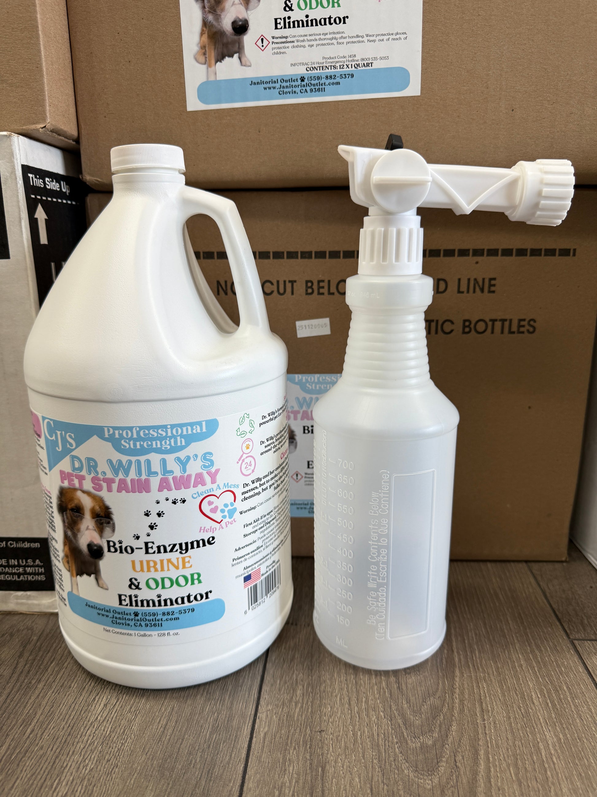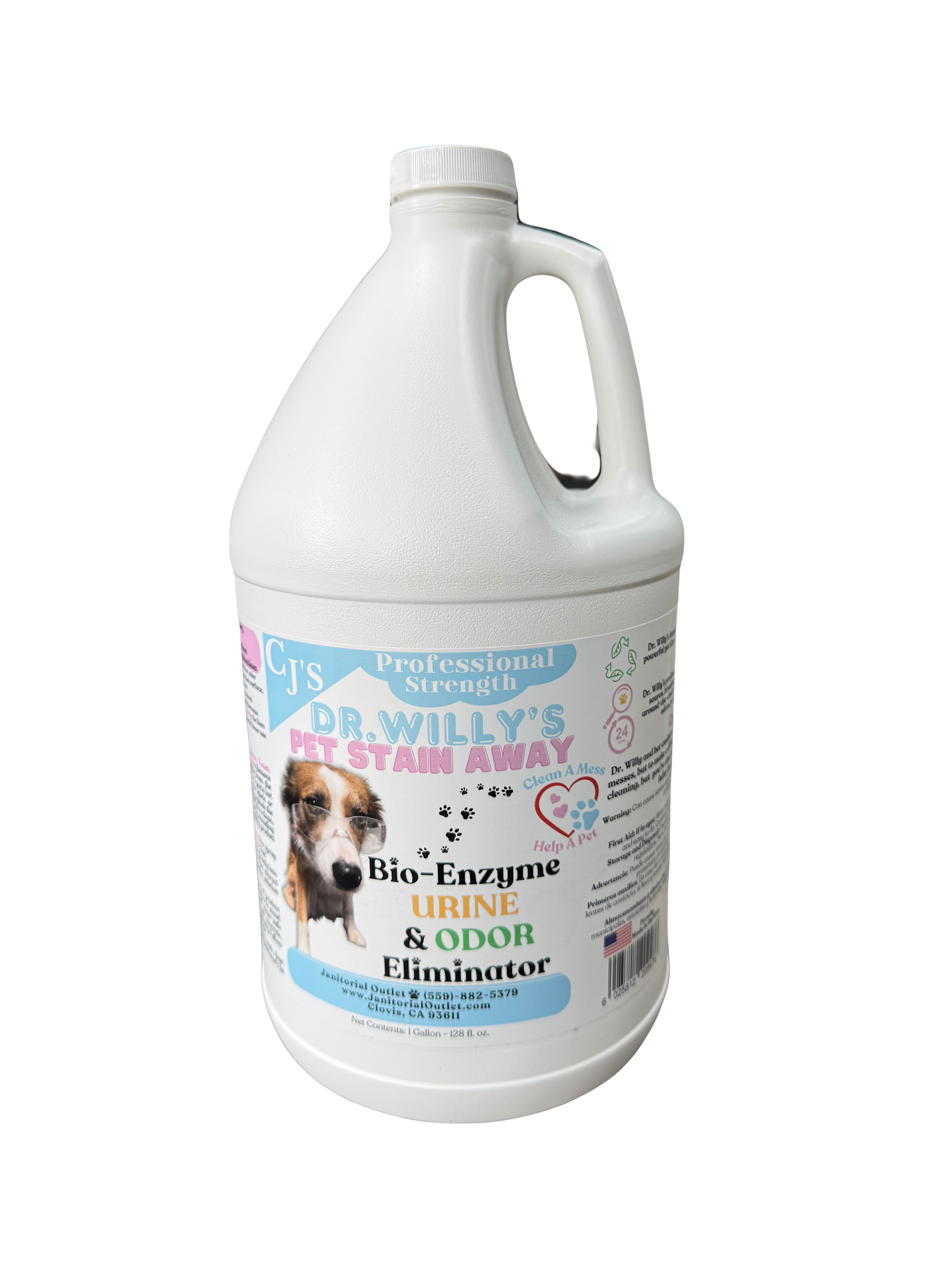 Meet Dr. Willy Pet Stain Away, your go-to solution for removing tough pet stains and odors! Whether it’s urine, vomit, or other pet messes, this powerful enzyme-based cleaner breaks down organic matter at the source—leaving your carpets, upholstery, and hard surfaces fresh, clean, and odor-free.Featuring our adorable mascot Dr. Willy (because even messes deserve a little charm), this formula is safe for pets and kids. It works fast, smells fresh, and doesn’t just mask odors—it eliminates them.Works Best On Carpet, Upholstery, Concrete, Toilets, Drains,Other Water-Safe & Porous Surfaces *Pairs Great with Carpet & Upholstery Machines